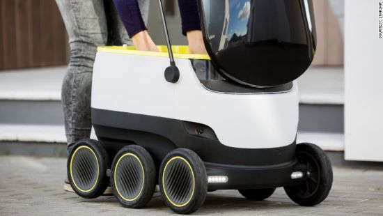 在愛沙尼亞、德國和倫敦格林威治的街頭,“快遞”機(jī)器人正在接受測試。這些機(jī)器人的外殼上裝有傳感器,每當(dāng)探測到行人及障礙物時,便會發(fā)送指令,讓機(jī)器人減速、停止或者改變路線。機(jī)器操縱者也可以通過麥克風(fēng)與行人進(jìn)行遠(yuǎn)程交流。